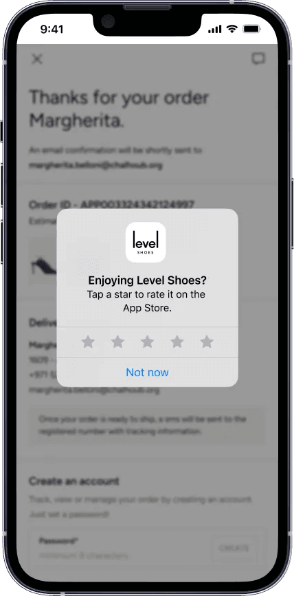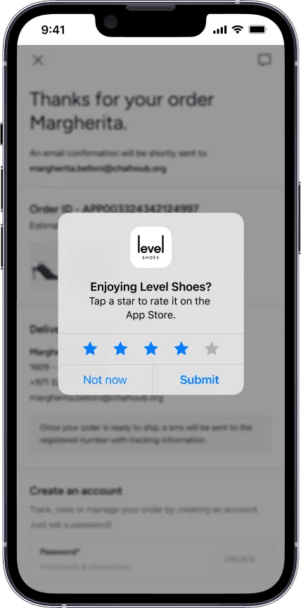 Our goal was to reflect the enhancements in the application with the revamp and new features to the volume of ratings and reviews in the app store as well as the rating score. In the end, the app store rating score is a great reference point for first-time customers and a great source to listen to your customers. So, we needed to find a way to motivate our customers to leave feedback for Level Shoes, particularly the positive ones. The soft pop-up concept was born as a solution to those questions in mind.