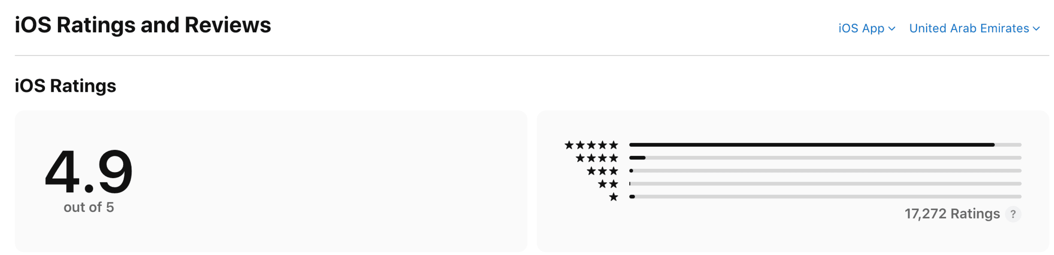 The bulk of the feedback is coming from our current biggest market, UAE in which the rating is also higher than the average of all countries: