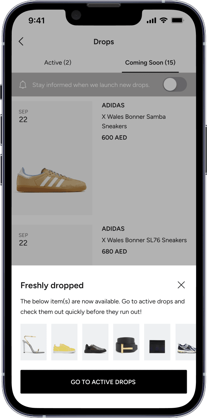 We focused on creating a seamless, high-energy experience that made users feel the exclusivity and urgency of the drop. I explored multiple layouts, incorporating bold typography, countdowns, and engaging animations to build anticipation. I also proposed integrating personalized notifications and priority access for loyal customers. The most important thing was to give a fresh feeling to the drops pages that will differentiate it from a standard PLP.
